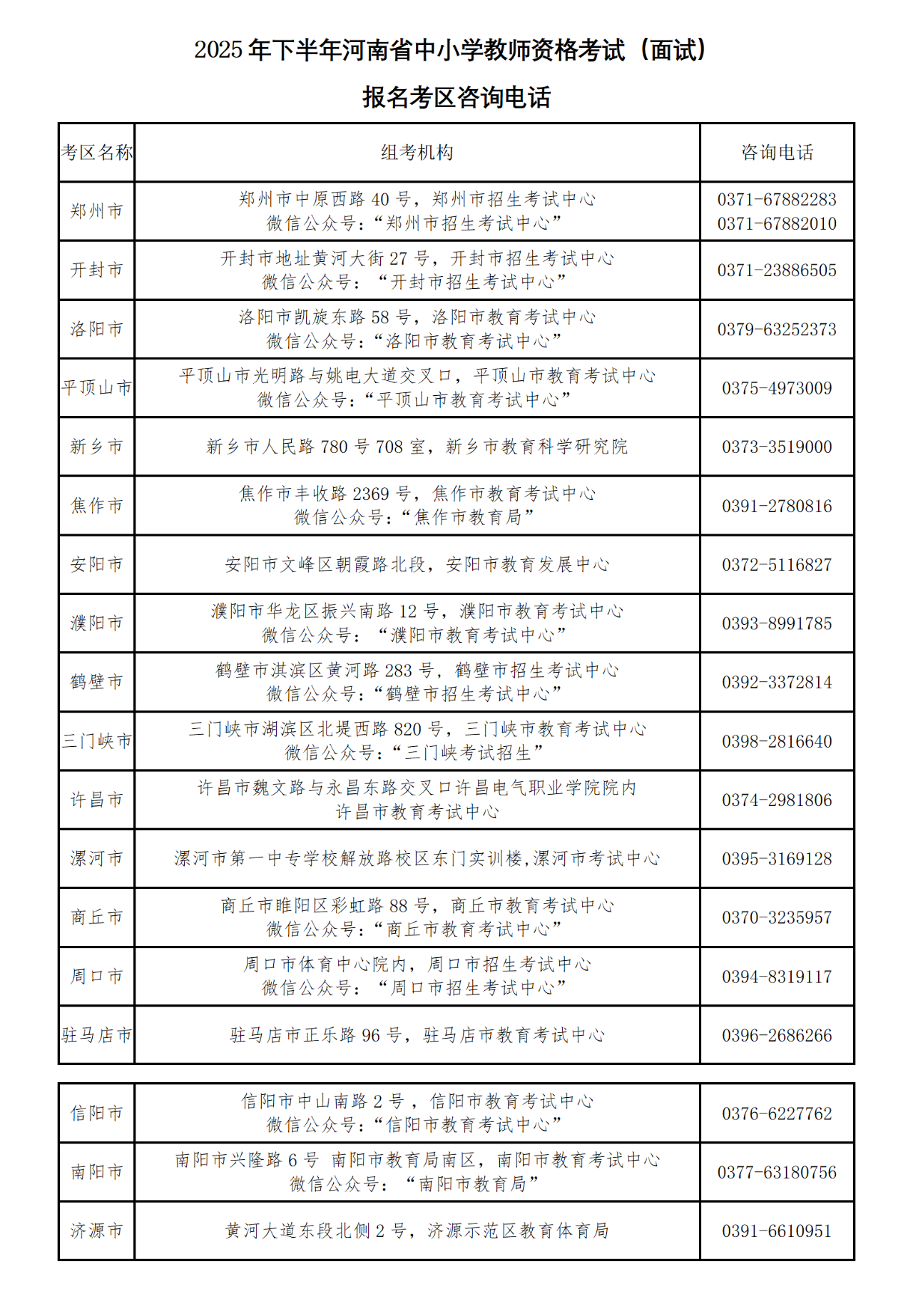 (5)我省中小学教师资格考试以省辖市(含济源示范区)为考区(省直管县的工作由其原属省辖市负责管理),共设18个考区。考生在选择考区时,非普通高等学校在校生应选择户籍所在地或居住证申领地的省辖市报考;河南省普通高等学校在校生可选择就读学校所在地、户籍或居住证所在地的省辖市为考区。